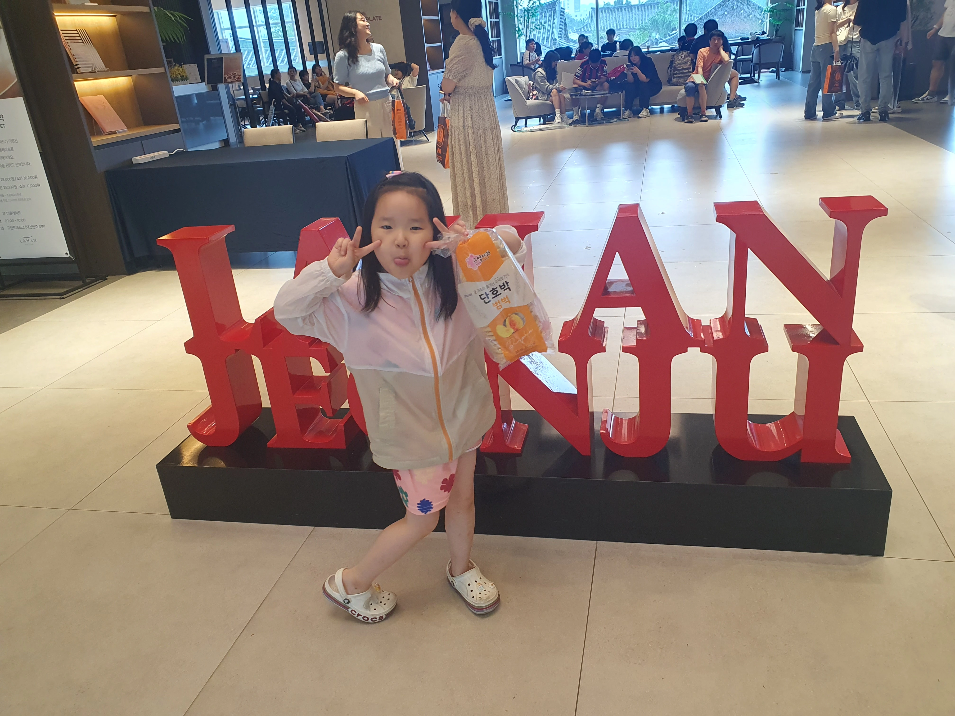 비 오는 날이라 외출이 제한적이었지만, 아이를 달래며 전주 길거리에서 바게트빵과 편의점 간식을 사서 호텔로 돌아왔습니다. 그리고 라한호텔 전주의 실내 수영장에서 물놀이를 했죠! 수영장 온도는 약 31도 정도로 따뜻했고, 가족 모두 물속에서 신나게 놀며 피로를 풀 수 있었습니다. 딸아이는 “이번 전주여행에서 수영이 제일 재미있었어!”라며 만족감을 표현했어요. 전주여행 추천 포인트 중 하나는 바로 이런 호텔 내 즐길 거리랍니다.
